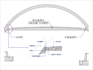 ITPC-Slab SystemIt is an improvement in terms of how the floor slabs and supporting brackets inside a tunnel are connected. While the conventional method was to just stack them, this method joins them laterally, reducing the size of the bracket and making wall construction easier.- Reference project: Namhae-Yeosu Undersea Tunnel